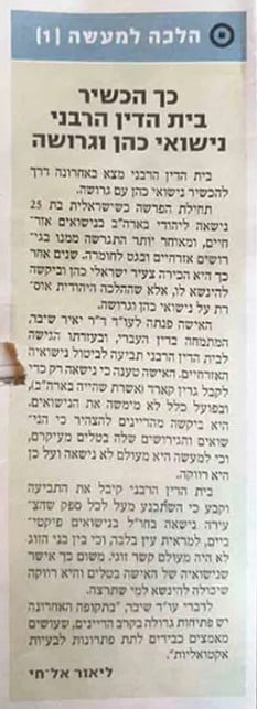 כך הכשיר בית הדין הרבני נישואי כהן וגרושה