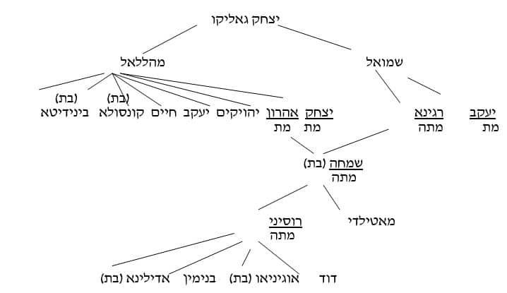 לצורך הבנת הסכסוך אביא את אילן היוחסין של משפחת גאליקו בו מצוינים כל הנוגעים בפרשה.[1]